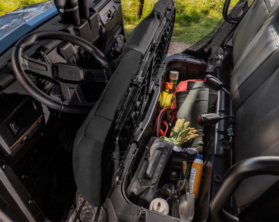 Le RANGER SP 570 est conçu pour maximiser votre productivité au quotidien. Grâce à sa benne basculante à assistance, chargez et déchargez vos fournitures en un clin d’œil, sans effort. Sa transmission intégrale à la demande vous permet de franchir les terrains accidentés avec une adhérence optimale, pour que rien ne vous ralentisse.